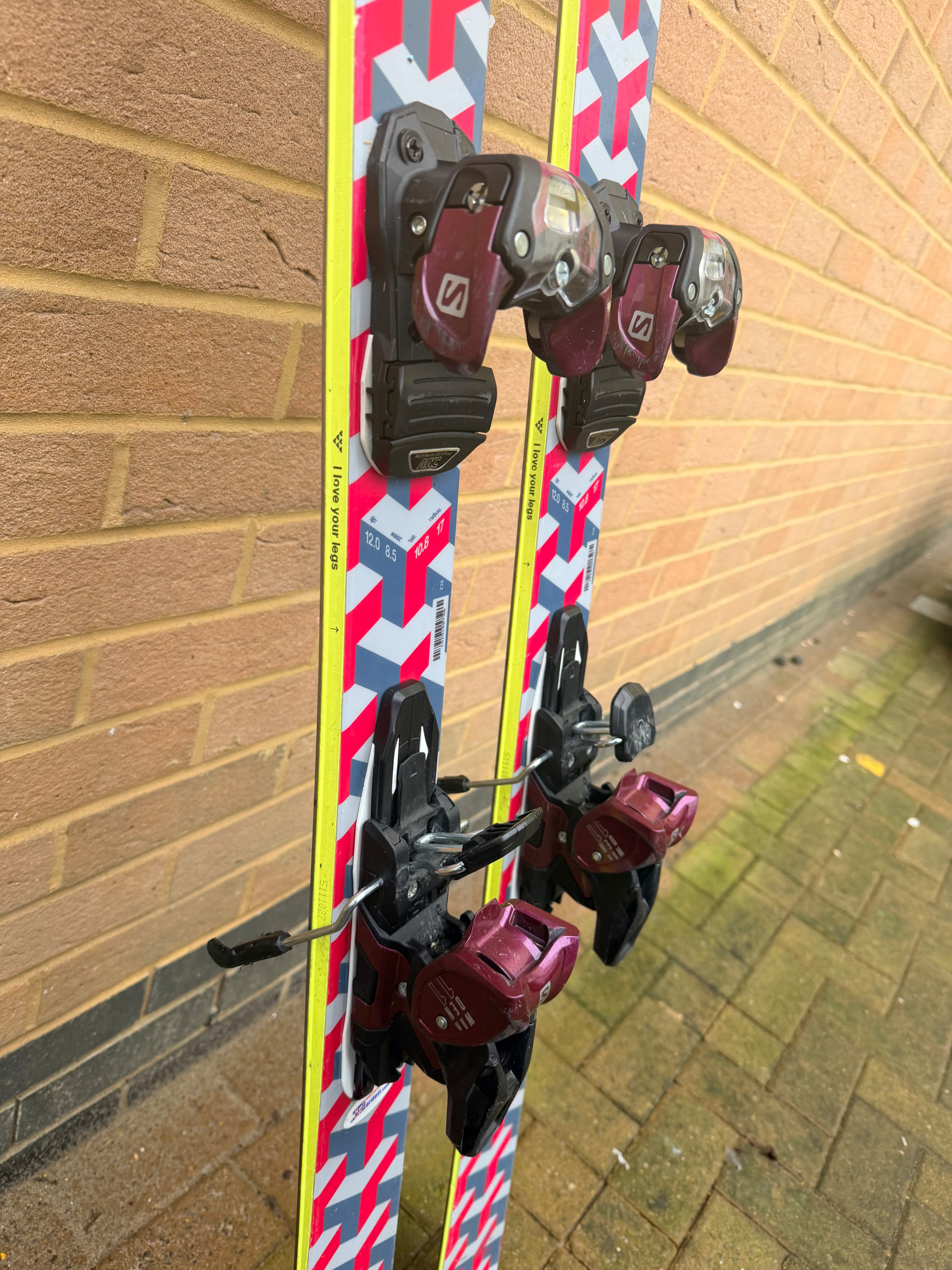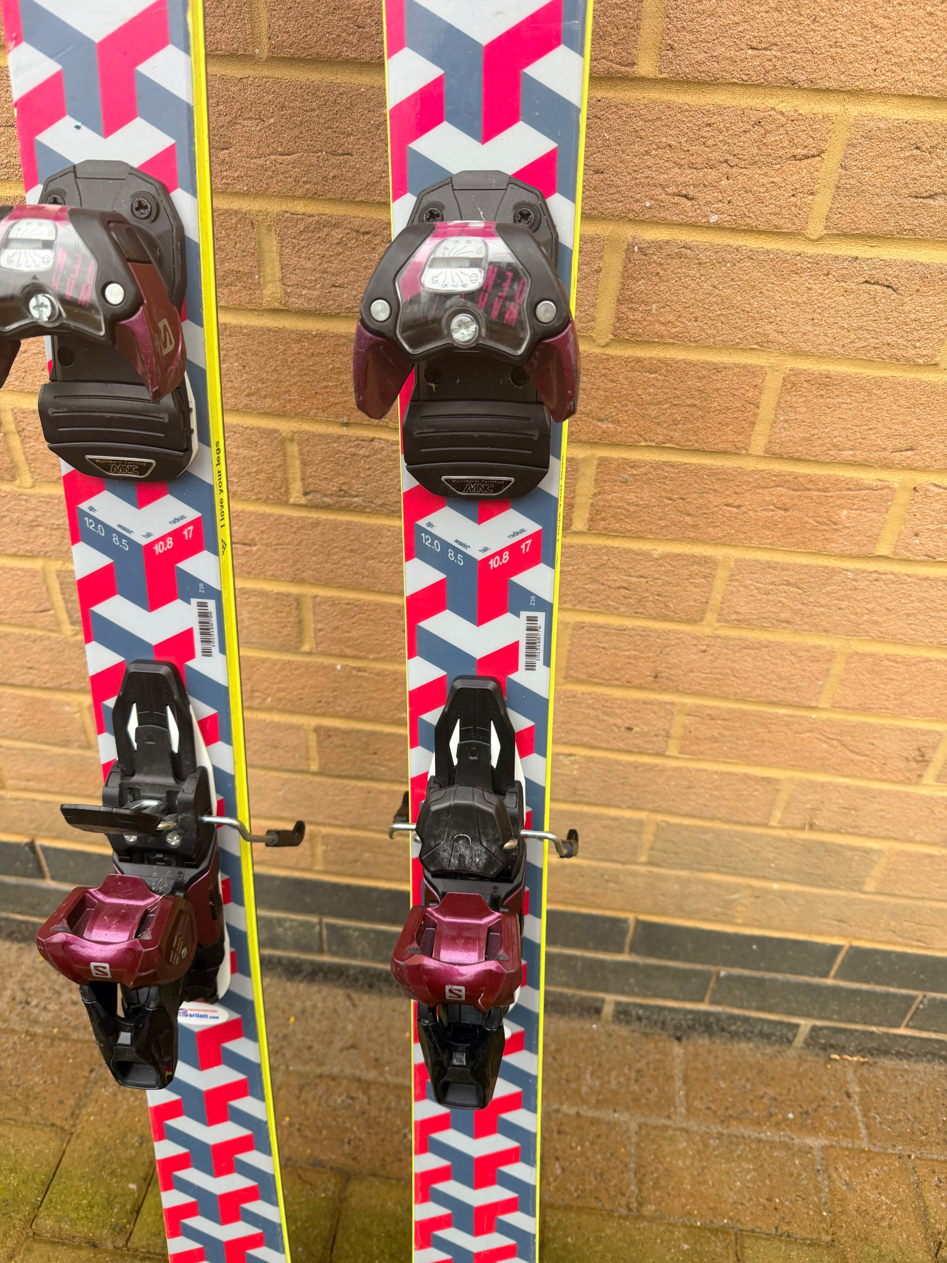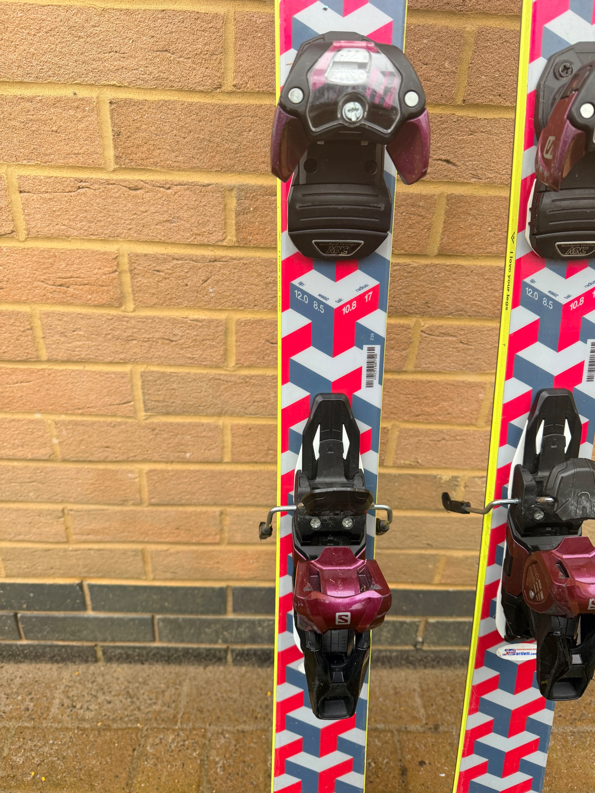 Binding only used for a week. Skis about 5 weeks use.. Previously mounted (now plugged) with a Fritschi Tecton touring binding. Set for Boot sole length 290mm
