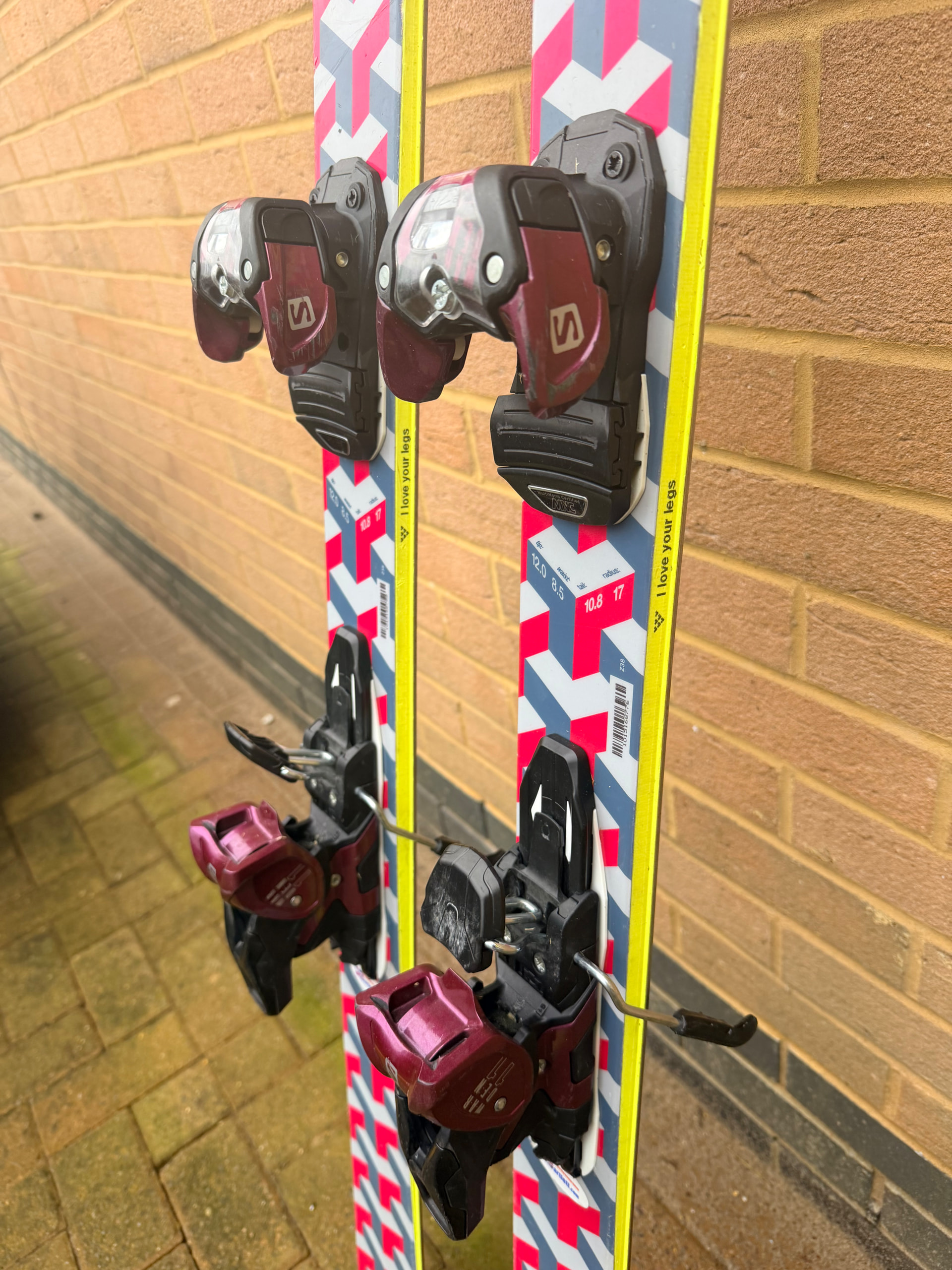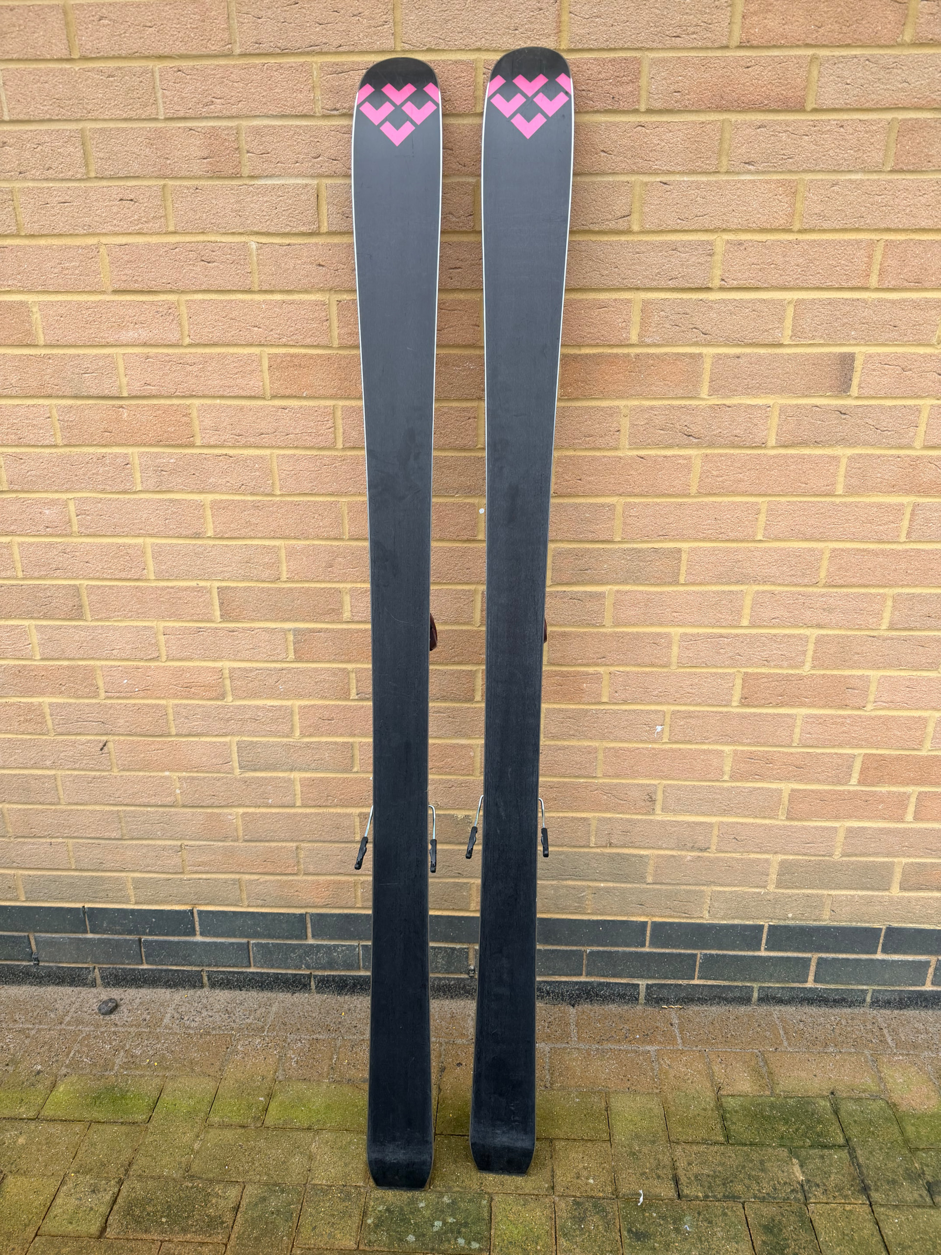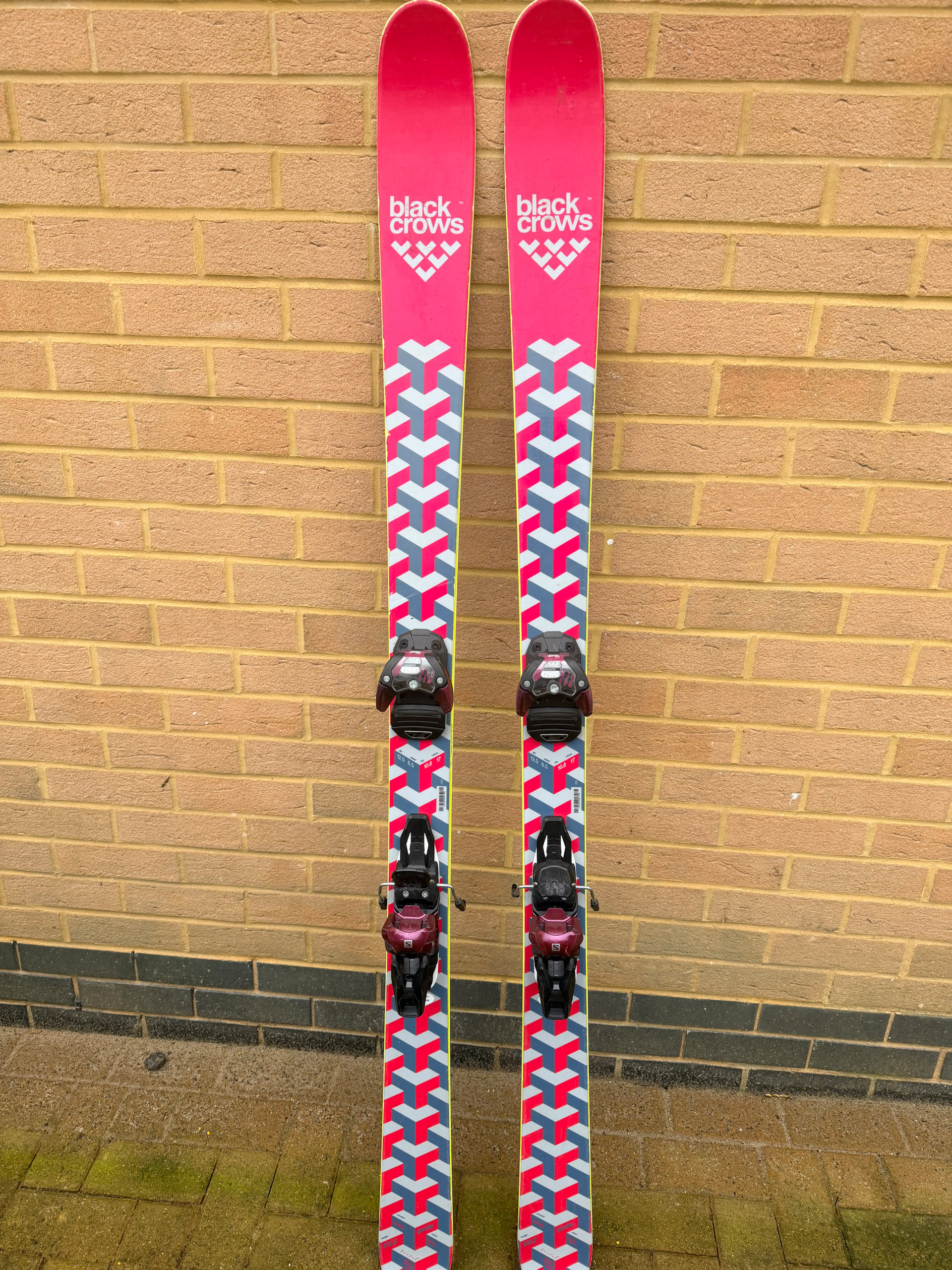 Binding only used for a week. Skis about 5 weeks use.. Previously mounted (now plugged) with a Fritschi Tecton touring binding. Set for Boot sole length 290mm