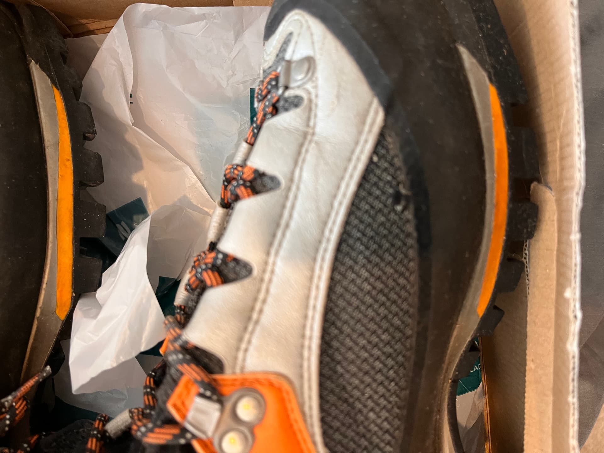 There’s very little wear to the sole or elsewhere, though there’s one small nick in the side of the left boot, visible in the pictures.