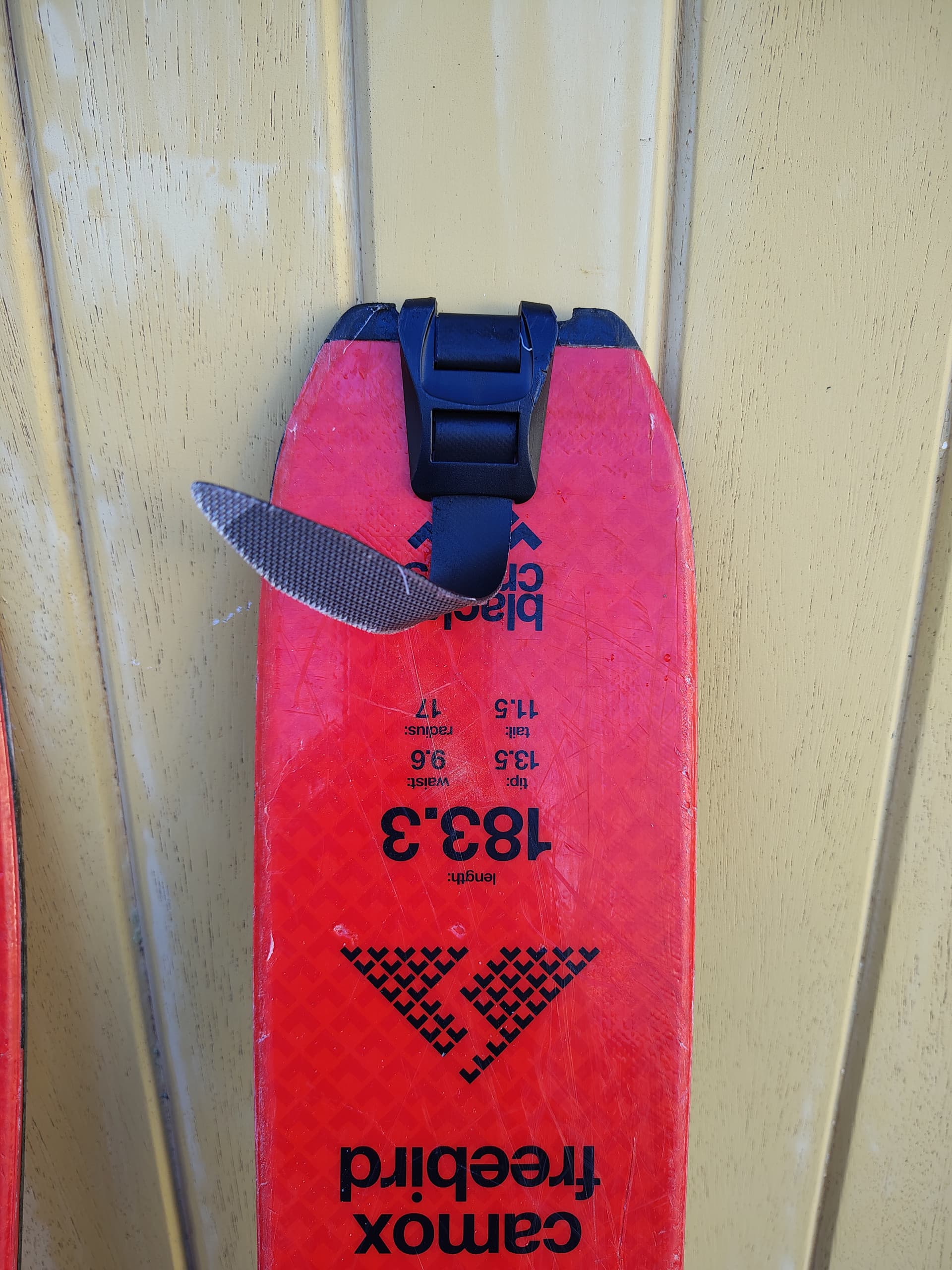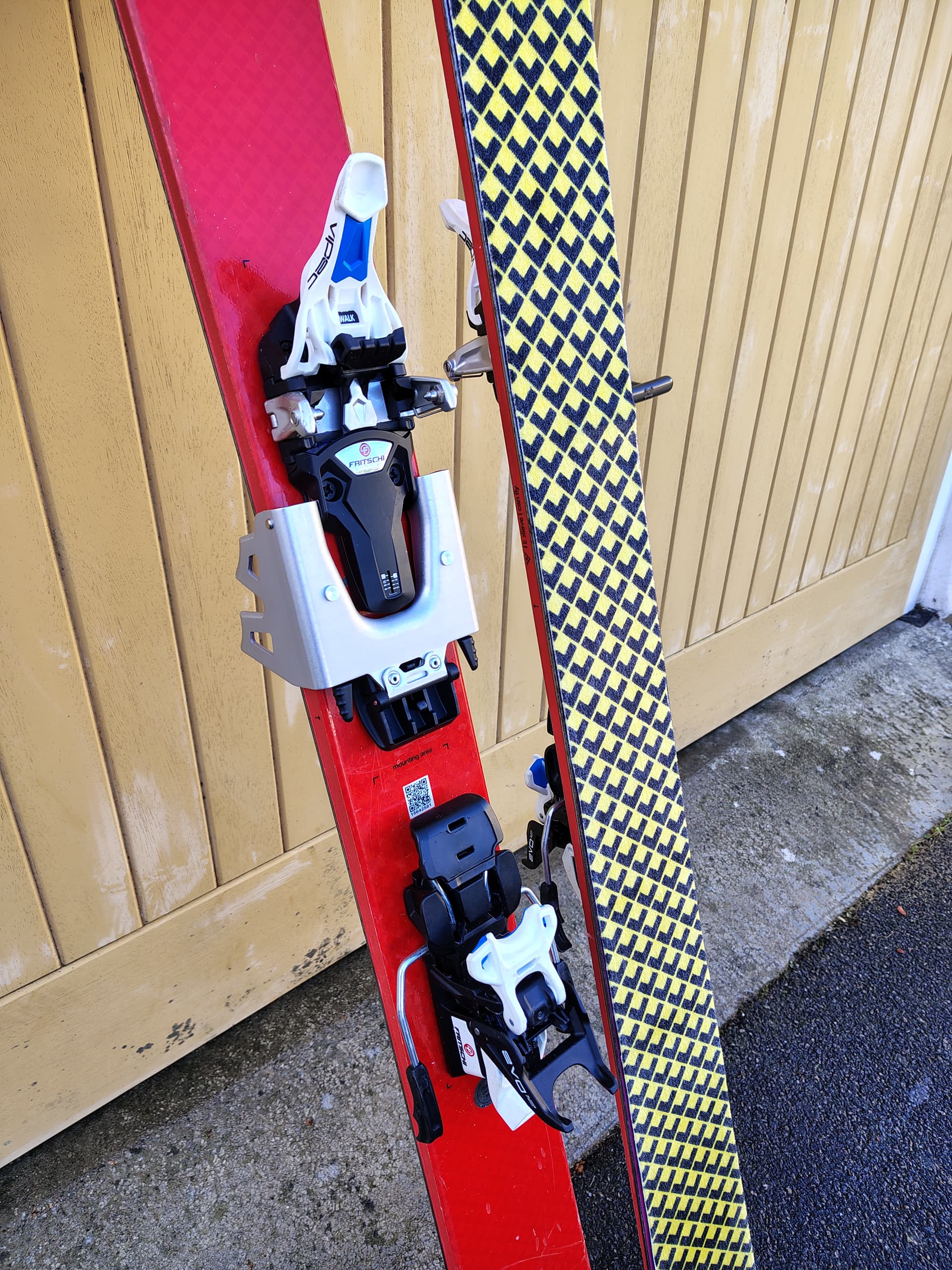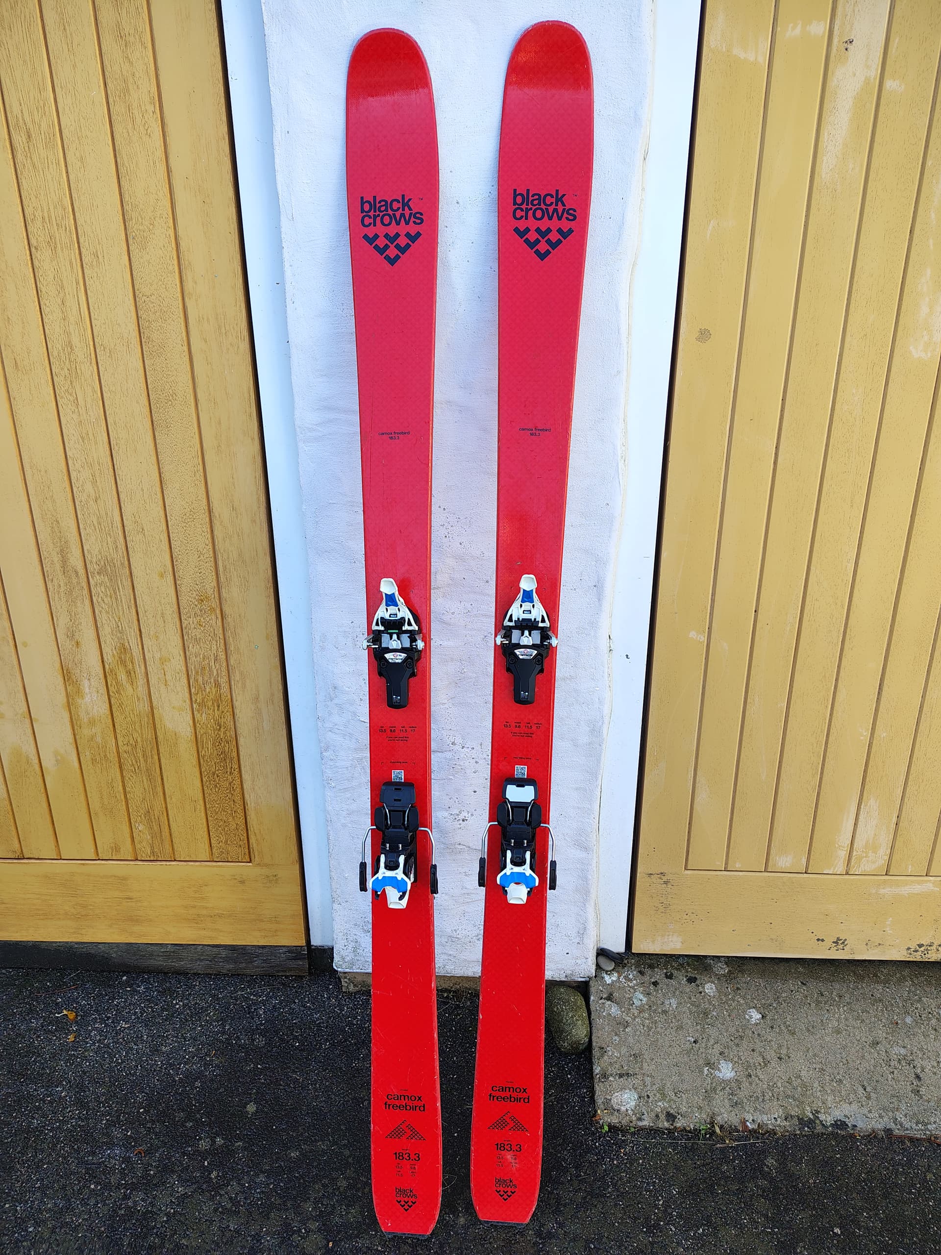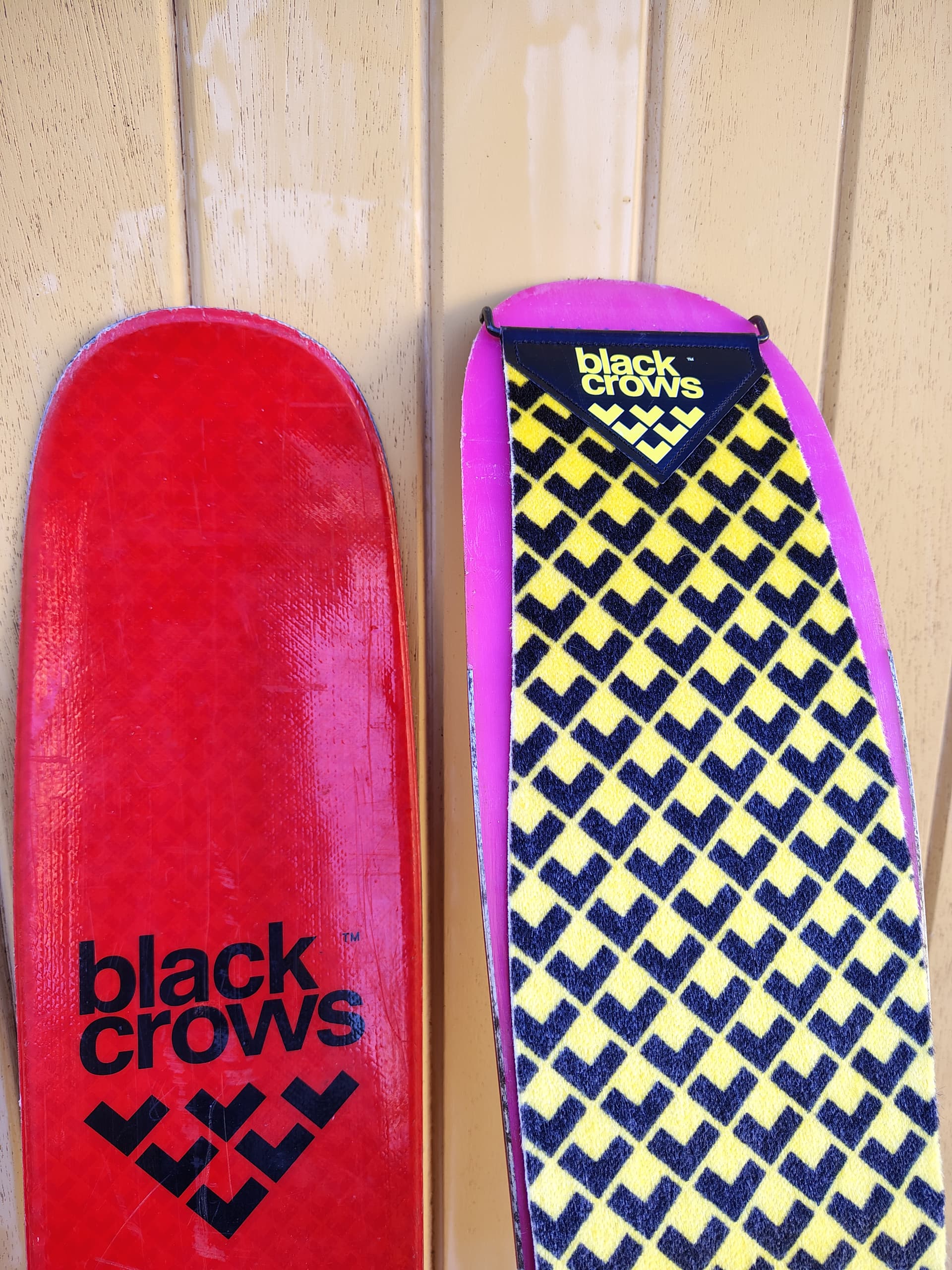 Touring ready - just need to take off the storge wax and a brush across the bases. Black Crows Pellis skins made for the skis (no cheat sheet). Fritschi Vipecs with crampons.